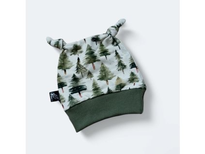 Padnoucí čepice s uzlíky pro malé drobečky. Je ušitá z příjemně hebké teplákoviny se vzorem stromů. Má pružný lem, aby netáhla na hlavičce a skvěle se přizpůsobí....
