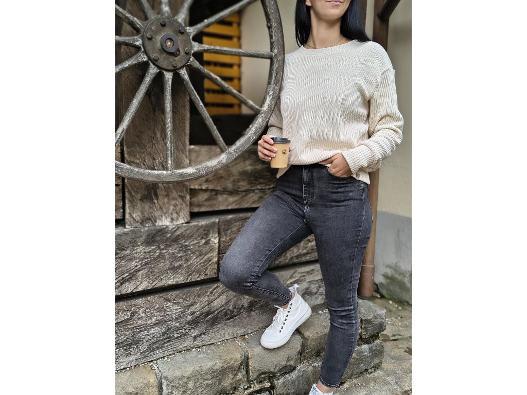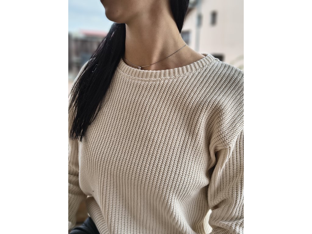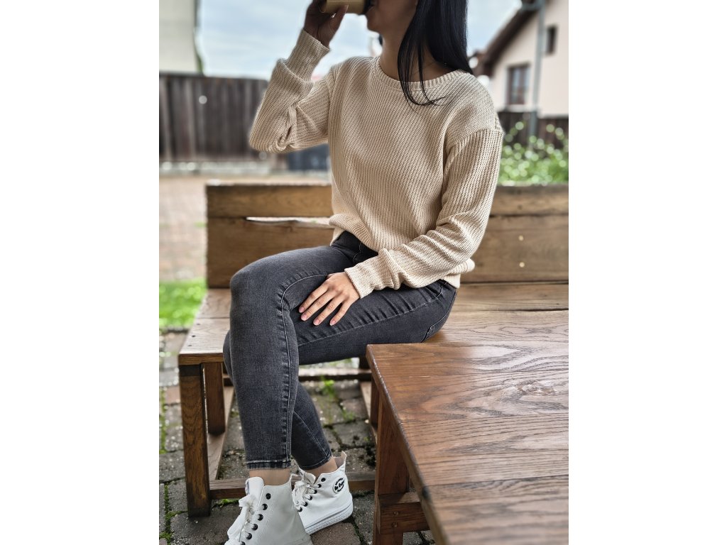 Svetr s pletenou strukturou v neutrální béžové barvě je ideální kousek do tvého šatníku. Díky volnějšímu střihu a jemné struktuře materiálu se pohodlně nosí a snadno kombinuje. Svetr, který si zamilujete!