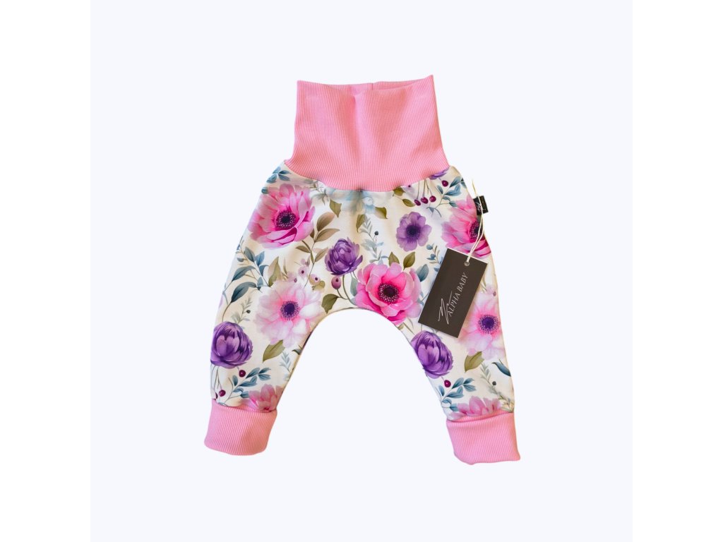 🌸 Ručně šité dětské baggy kalhoty – Květinový sen 🌸