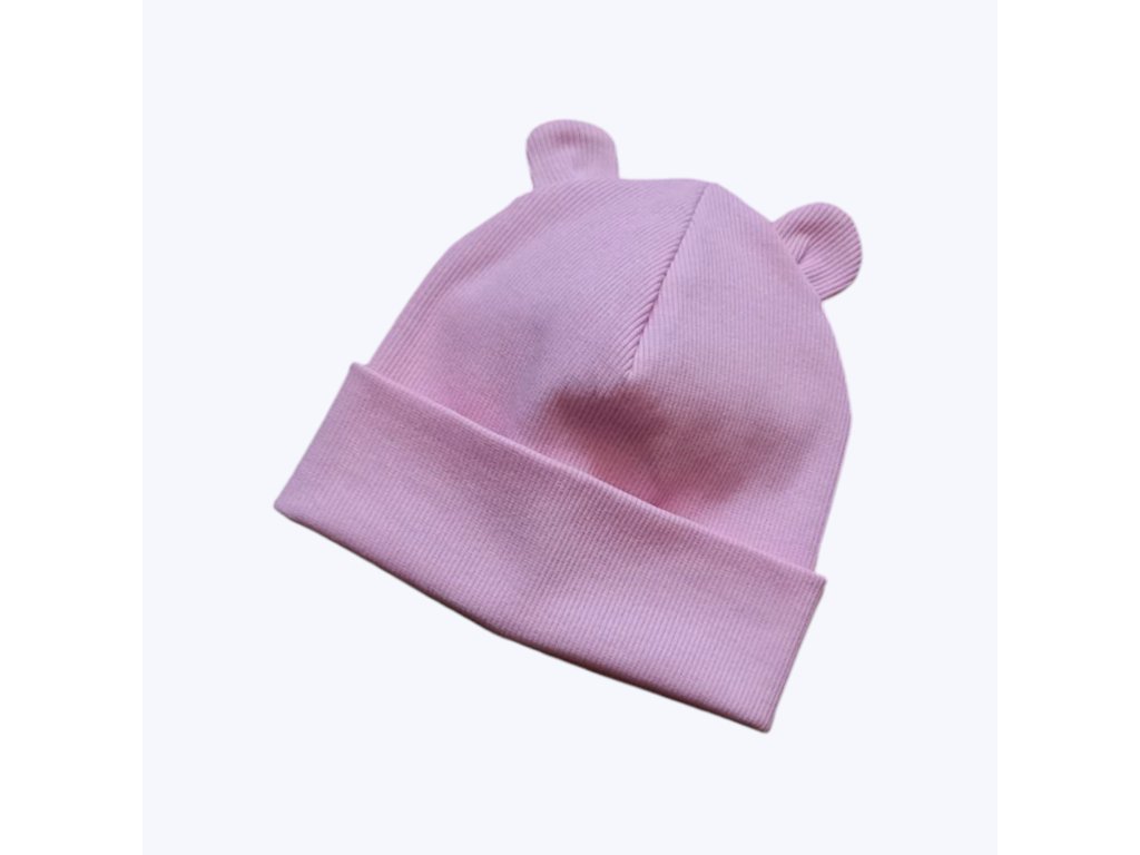 Dívčí žebrovaná čepice s oušky BABY PINK