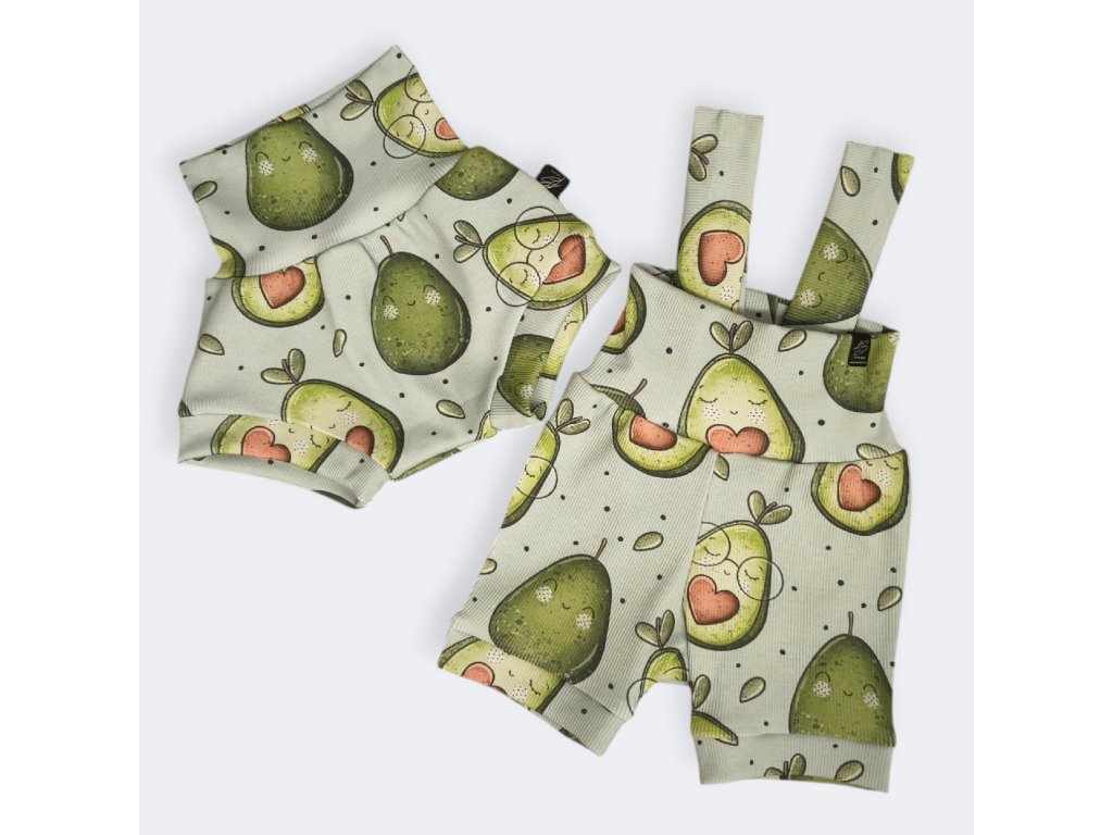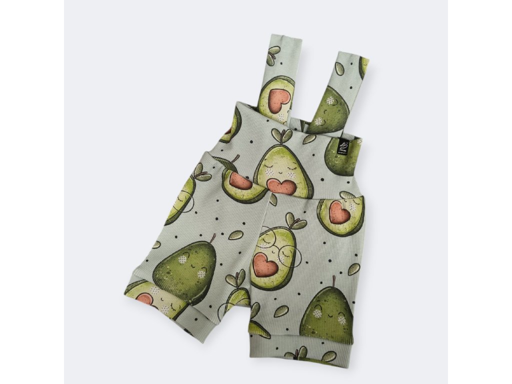 Rozkošné letní kraťásky pro nejmenší s veselým motivem usměvavého avokáda. Ušité z kvalitního pružného žebrovaného úpletu, který zajistí pohodlí při každém pohybu. Praktické lacly se dají jednoduše přetáhnout přes ramínka, takže krásně drží a nikde netlačí. Ideální volba na teplé dny plné her a dobrodružství!