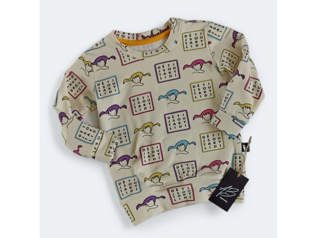 • Mikina ušitá z příjemně hebké teplákoviny s autorkým vzorem od autorky DĚTI JSOU TAKY LIDI.