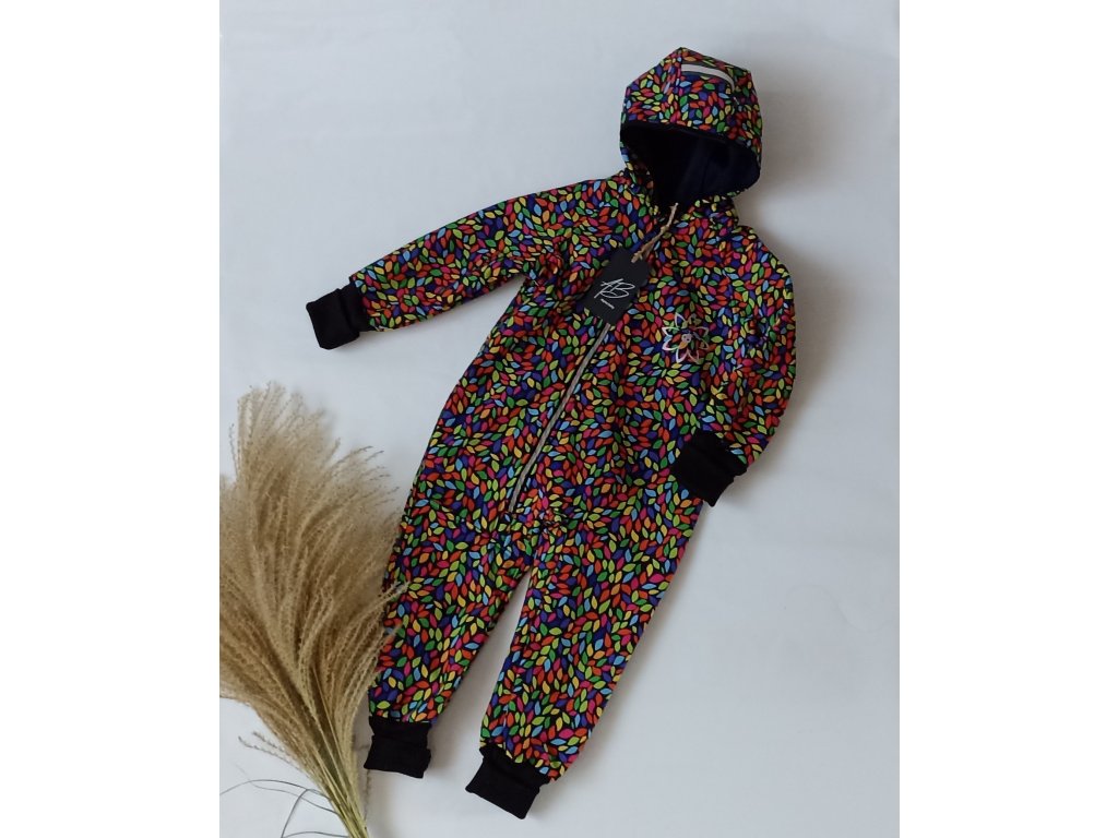 Pro malé dobrodruhy – chrání před větrem, deštěm i blátem, ideální na výlety, školku nebo dovádění venku. Design plný barev – lentilkový vzor přináší hravost a radost do každého outfitu. Funkční materiál – voděodolný, prodyšný, s fleecovou podšívkou pro maximální pohodlí. Snadné oblékání – praktické zipy, reflexní prvky, kapuce a elastické zakončení rukávů a nohavic.